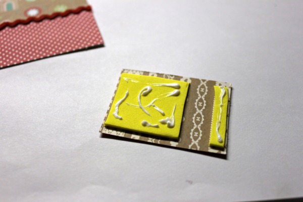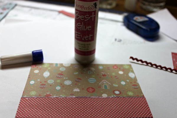 I started by cutting two pieces of patterned paper. Using the Best Glue Ever I glued them to a piece of scrap paper: