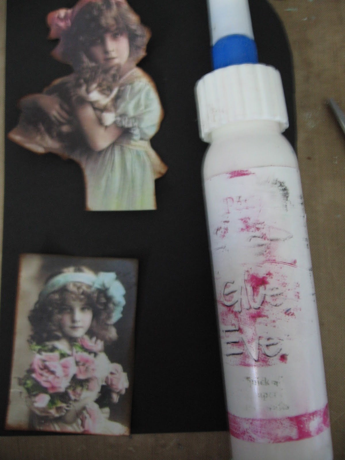 While everything was drying. It was time to work on my vintage images. I got these images from Pinterest. There is tons of free images on Pinterest that you can use to your liking. I printed the images off, cut them out and then went around the edges with some Vintage Photo Distress ink.