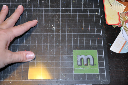 And here’s your tip: before adhering the pieces to the transparency, I placed it on my craft mat. I made sure the transparency was all lined up so I could easily find the middle.