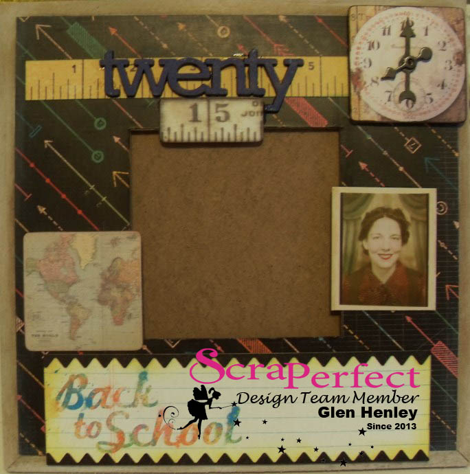 It’s Glen here with a short sweet post about the great products offered by ScraPerfect. Well, it’s the unofficial end of summer, and while I’ll be glad to stop sweating in the 80 plus temps we have had for two months. I am not looking forward to snow at all, there has been little time lately for crafting but I managed to make a nice project using one of Tim Holtz’s “Fragments Frame Kit”.