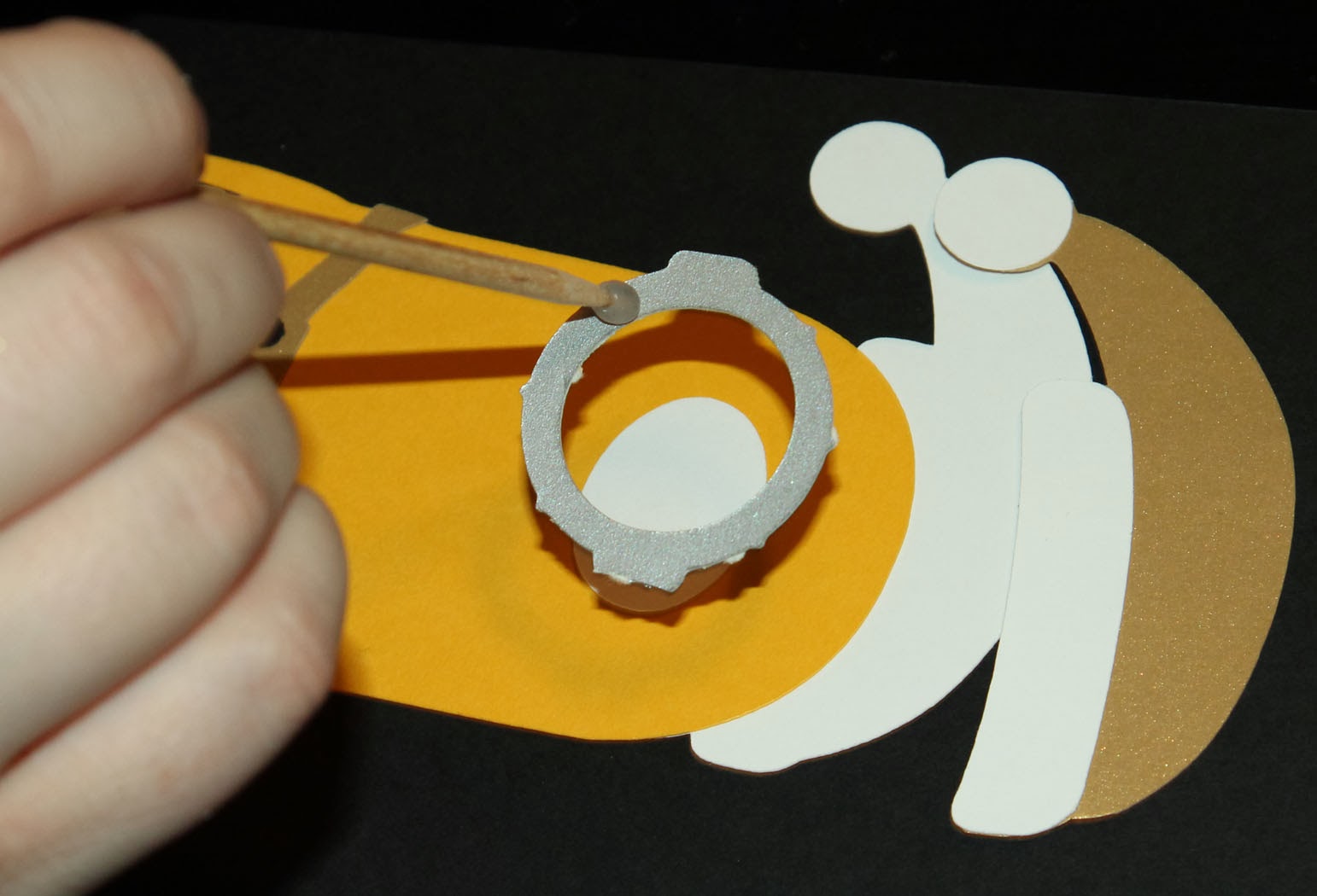 Now lets talk about the Embellie Gellie – an extremely useful tool when needing to pick up small parts for paper piecing. Your fingers stay out of the way and don’t become all sticky from trying to place those tiny pieces of paper to your project.