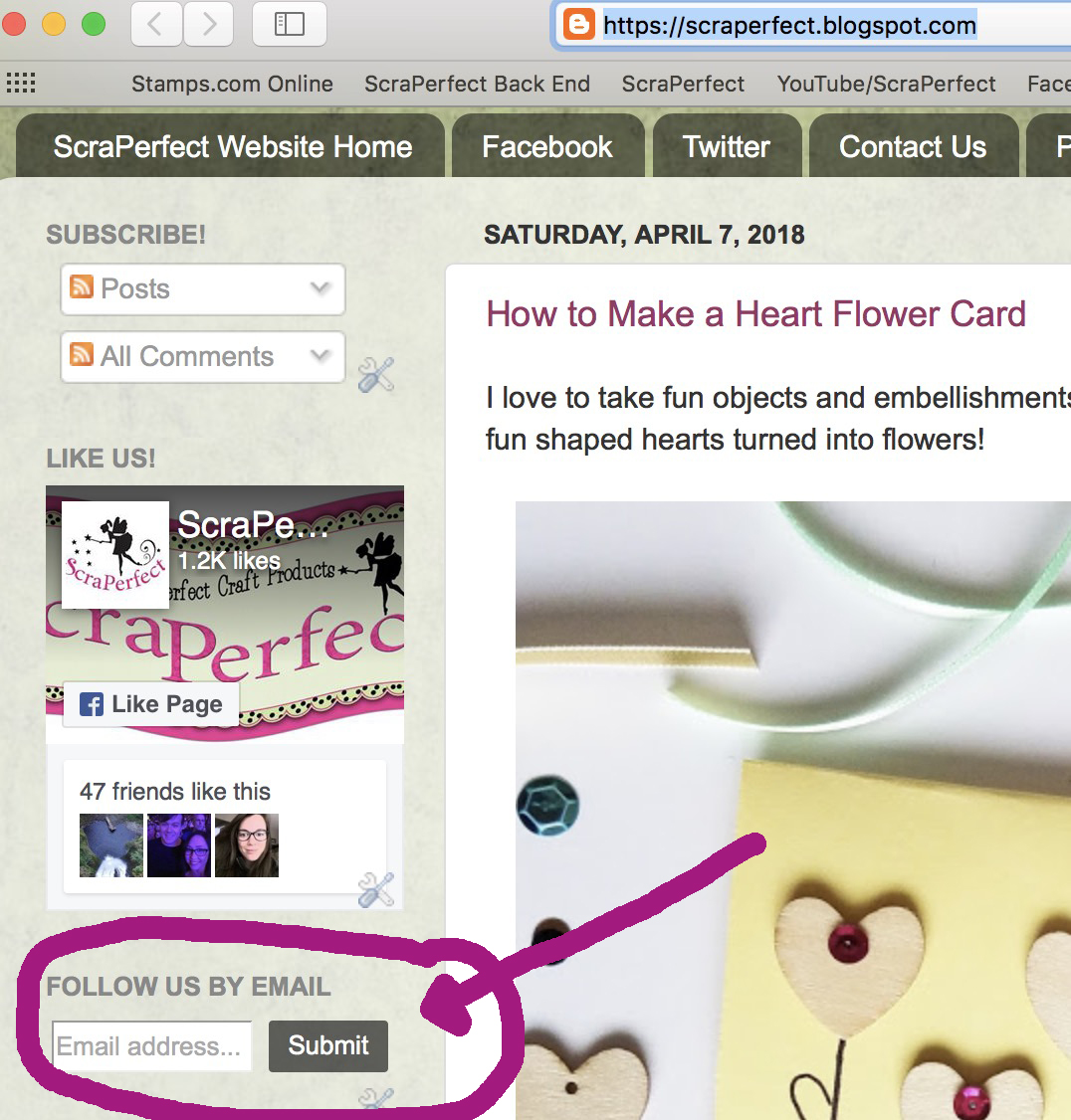 | “Follow Us” by entering your email on the ScraPerfect blog. |