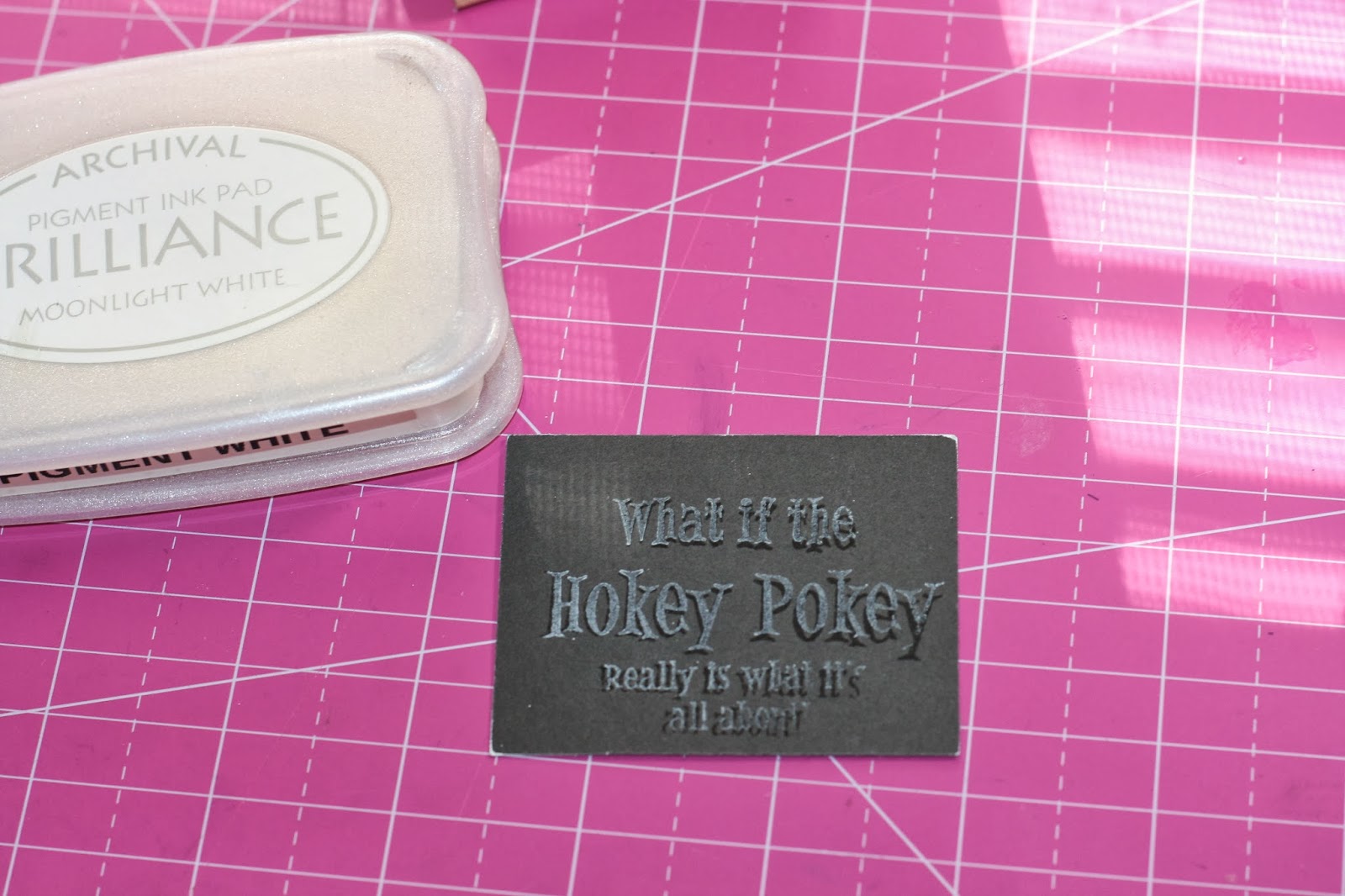3. Using the stamp and the embossing ink, ink the image onto the black cardstock.