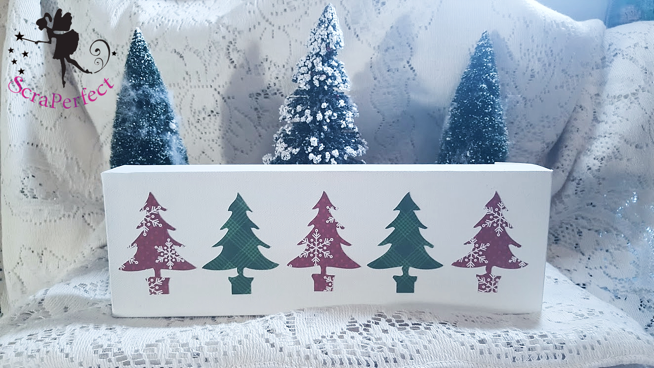 Using my Cricut machine, I cut one design in trees from each sheet of patterned paper.