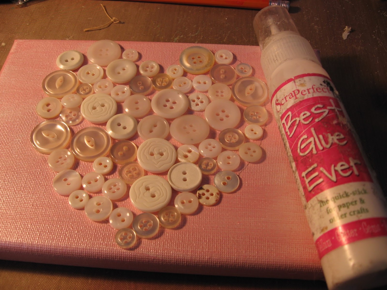 Once the buttons were glued down, I added some flat back trim in pink around the buttons to frame it and make the heart stand out.