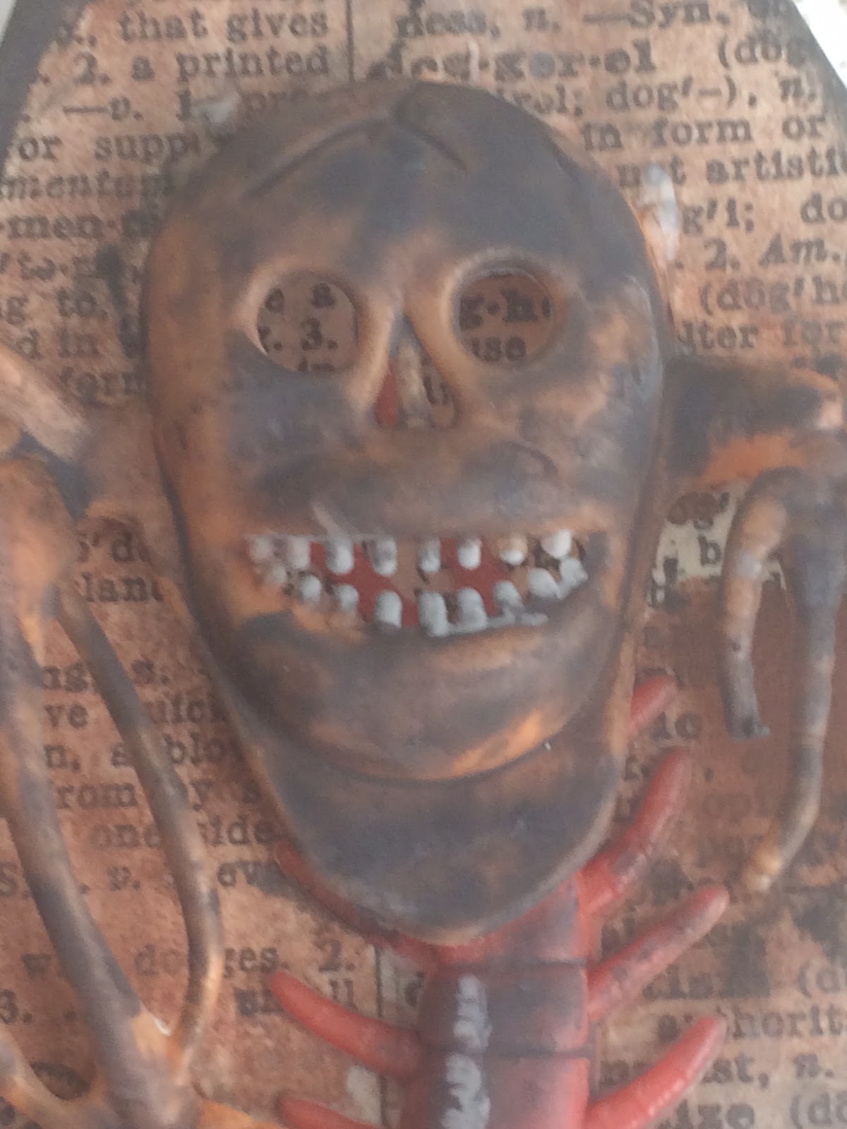 Pinterest board where someone decorated some old books with skeletons and bugs.
