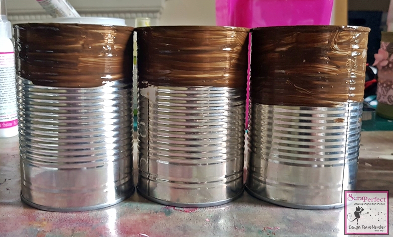 You will need a few clean cans. Paint the top and bottom with brown and black patio paints and leave to dry.