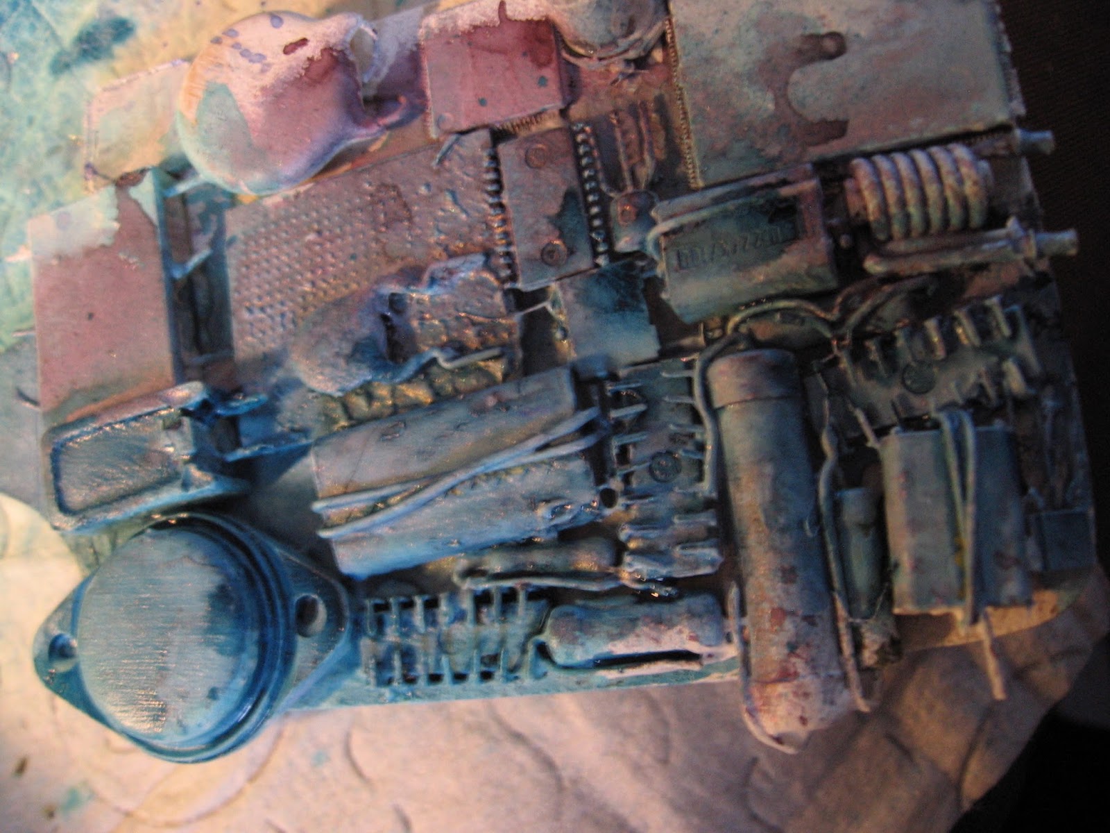 Once I was happy with the layers of colour, I got the Best Glue Ever out again, and this time I used it to glue down tiny micro, and mini micro beads for added texture to the piece.