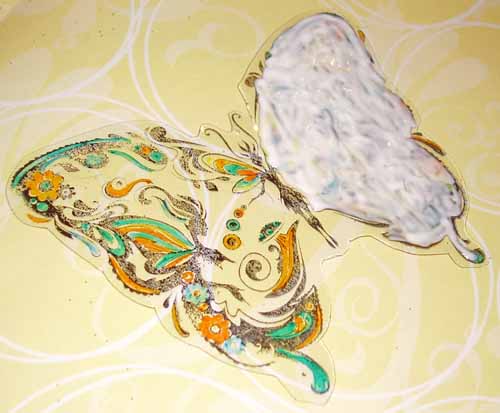 I had an experiment I wanted to try. I coated one of the butterfly wings with the Best Glue Ever and set it aside until it dried.