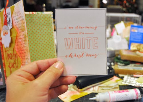 For adhering vellum you need the Best Glue Ever. What I like to do is use my finger to rub a thin layer of the Best Glue Ever all over the back of the vellum. It dries instantly and is invisible. I used it to adhere the vellum snowflake.