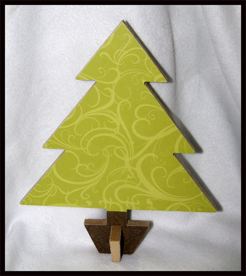 The first step is to lay your tree on the paper you are going to use and trace the tree. You will need to do this for both sides of the tree, then simply cut out. You will also want to do this for the base of the tree as well. I used 2 different papers for the tree and the base. I applied The Best Glue Ever with a painbrush to adhere the paper to the tree. Love the fact that this does not make my paper bubble up 🙂