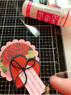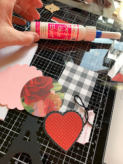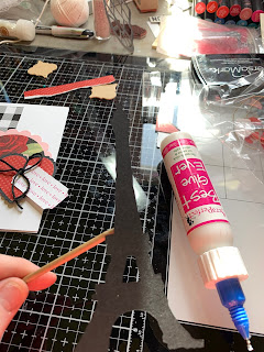 Using your ScraPerfect’s Embellie Gellie, makes adding die cut easy. Using the ScraPerfect’s Embellie Gellie to pick up your die cut and add ScraPerfect’s Best Glue Ever with No Clog Writing Tip .