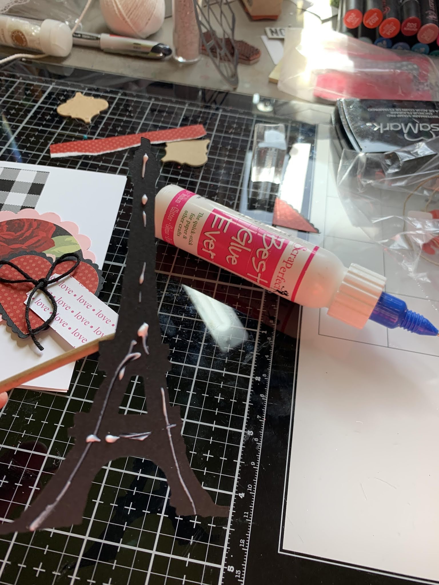 Using your ScraPerfect’s Embellie Gellie, makes adding die cut easy. Using the ScraPerfect’s Embellie Gellie to pick up your die cut and add ScraPerfect’s Best Glue Ever with No Clog Writing Tip .