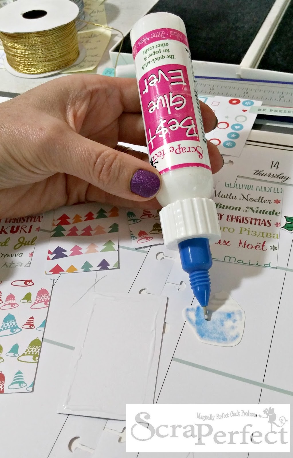 That’s it for me today -so remember that the Best Glue Ever is perfect to use in your creative planning because you only need a tiny amount and it then dries clean and smoothly so it won’t wrinkle or buckle up your pages! Until next time, happy crafting with ScraPerfect!