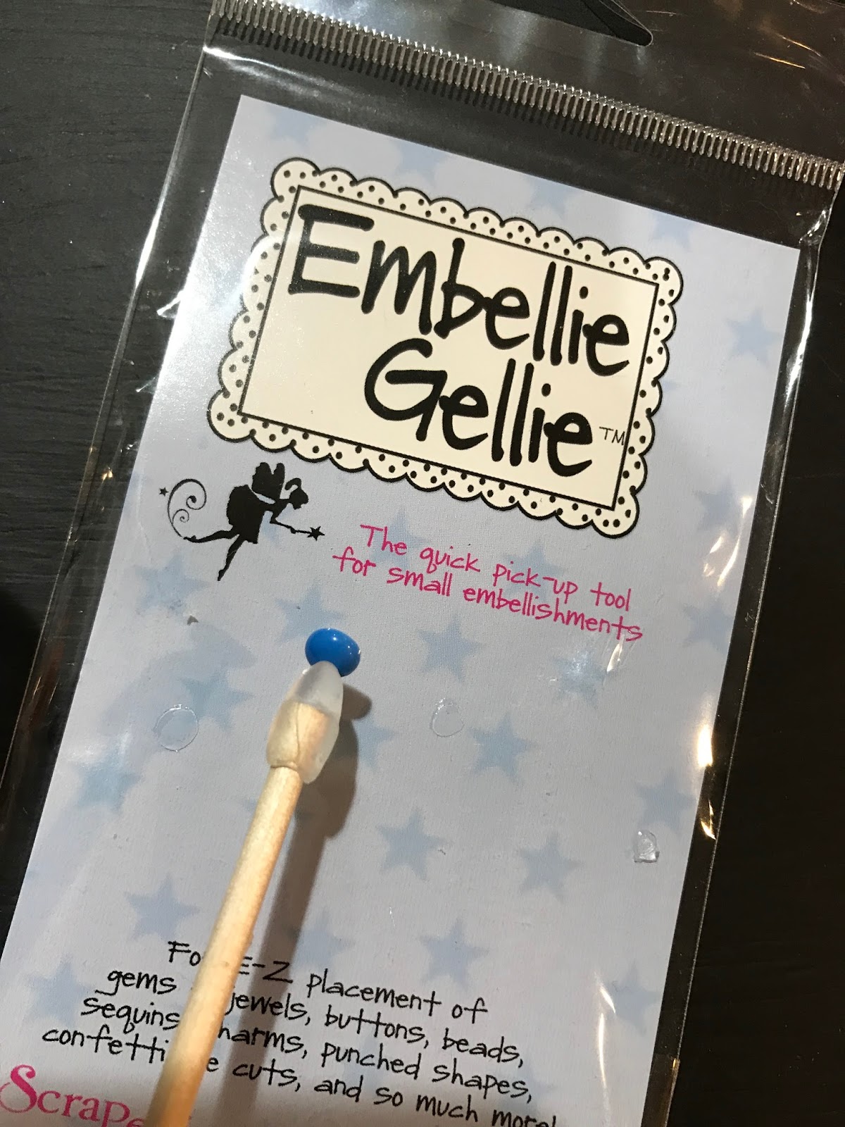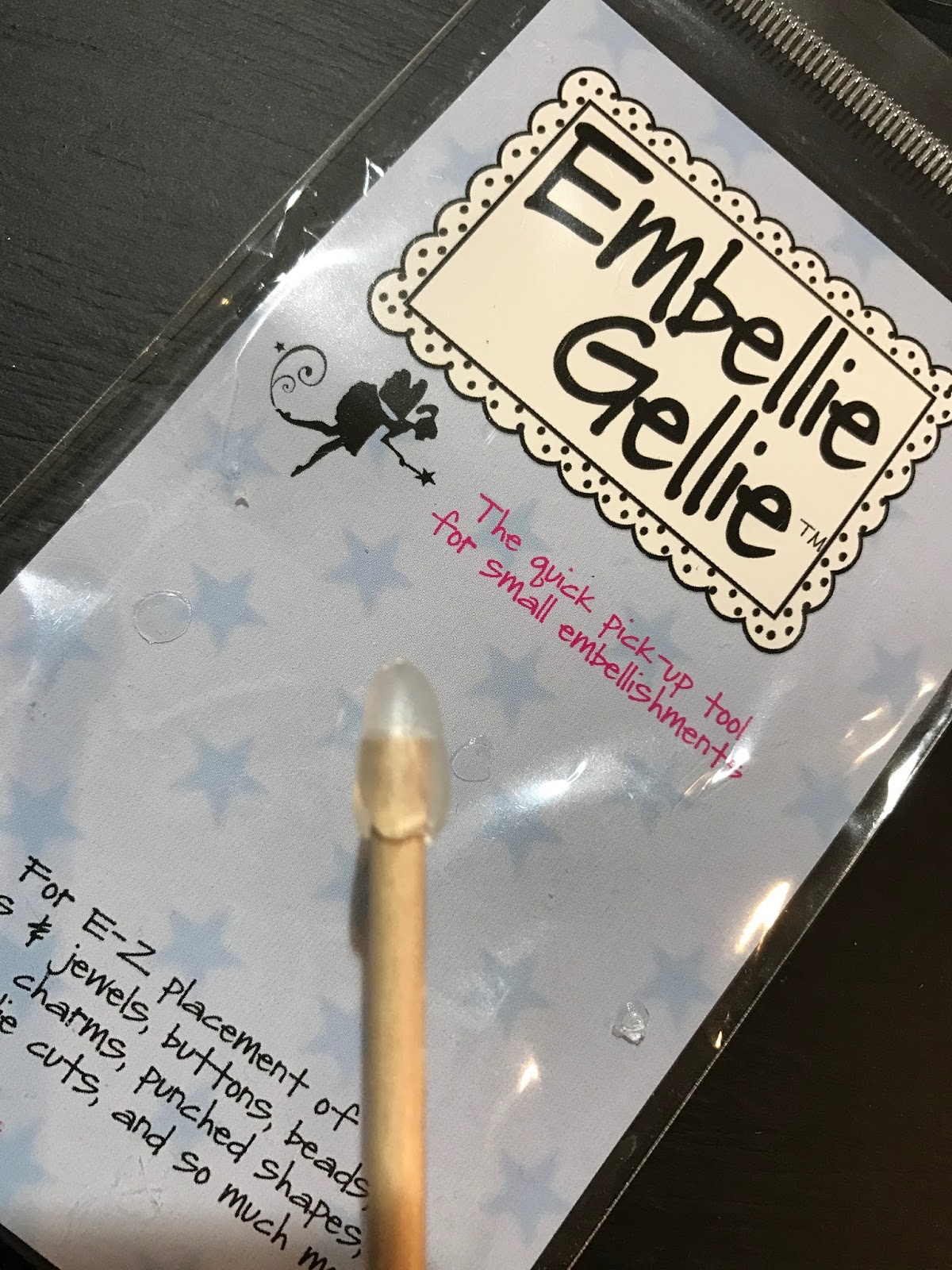 You can these use the pointed end of the wand to do any minor adjustments or push the embellishment further in your dot of adhesive. Game changer my friends…let me tell you.