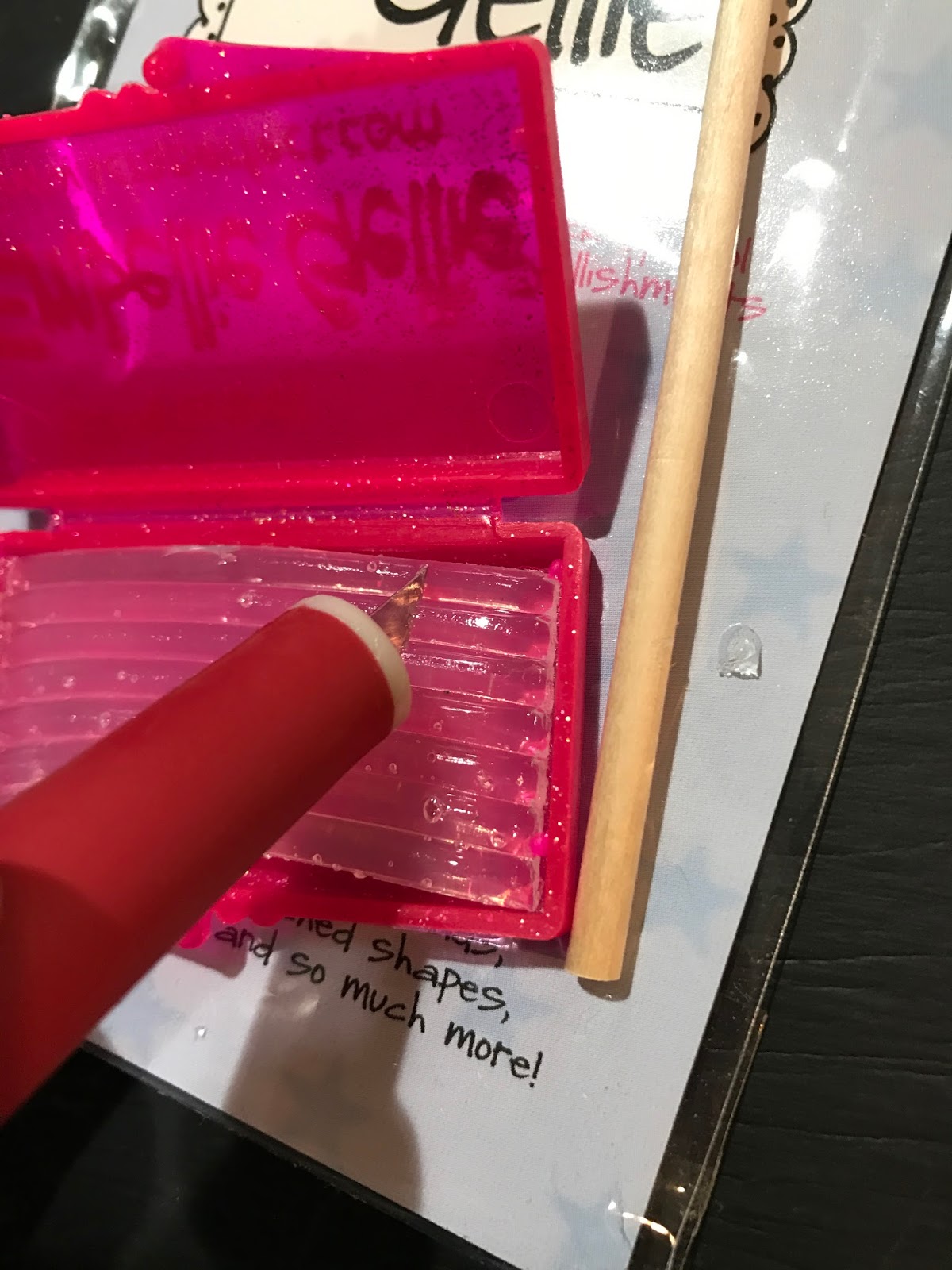 You’re now ready to start attaching embellishments. Touch the wand to the embellishment and you’re ready to go. So much easier to perfectly place than using your fingers or having the item pop away from you when using tweezers.