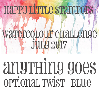 Making the watercolor background on this one layer white A2 size card is as easy as scribbling with 3 colors of Metallic Gel Sticks and then wetting it with a flat, wide water color brush! I used the purple, blue and green sticks today.