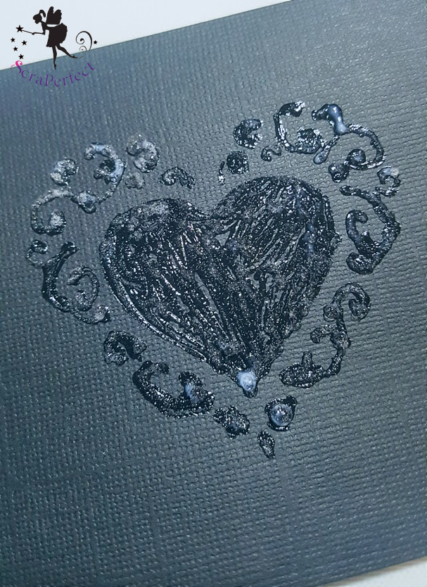 To finish, I used a small word stencil (love) along with a silver glitter gel pen, to give a sentiment that popped.