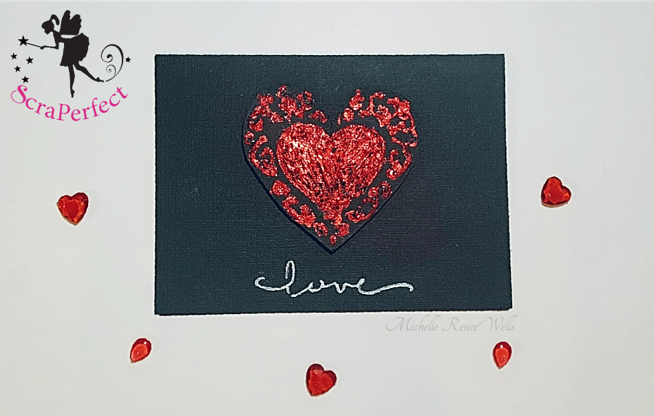 Once the transfer was complete, I fussy cut the heart and applied it to the 4×6 card base, using double sided foam tape.