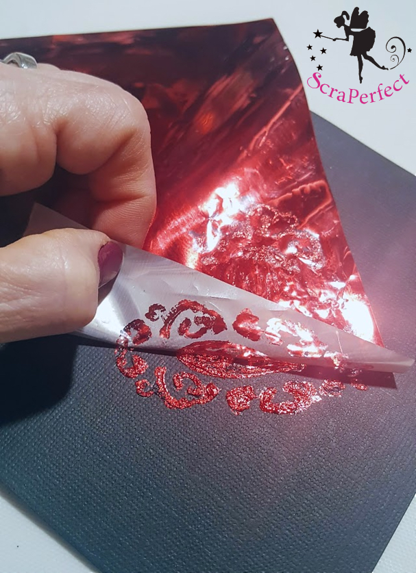 Gently applying the Transfer Foil to the design, I used a craft stick to