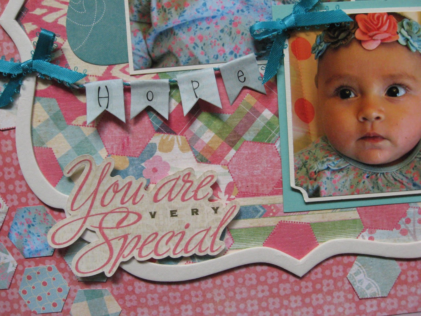 Karen here to show you how to make your own glue dots simply and easily. We have had a rough and stressful time the past few months and we all need a little “hope” in our lives. Well, let me introduce my niece Audrey Hope to brighten your day. I  created glue dots to attach the mini ribbon bows for the perfect finishing touch to my baby layout.