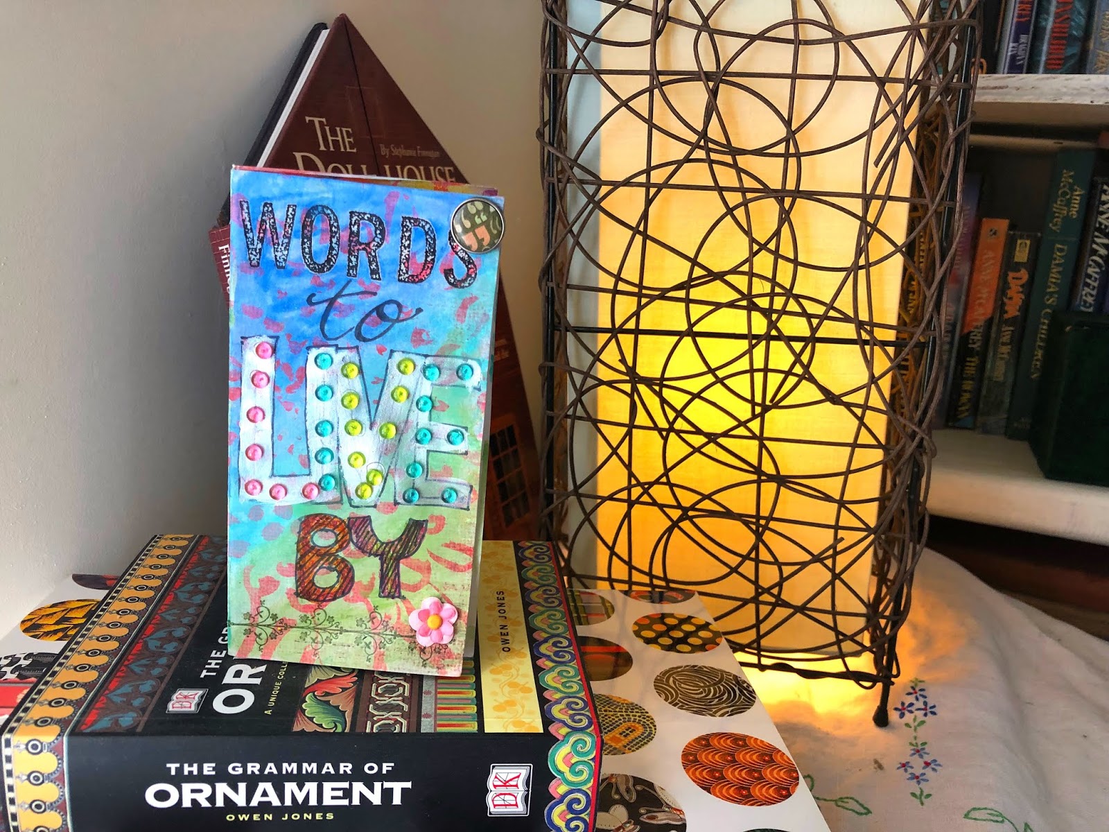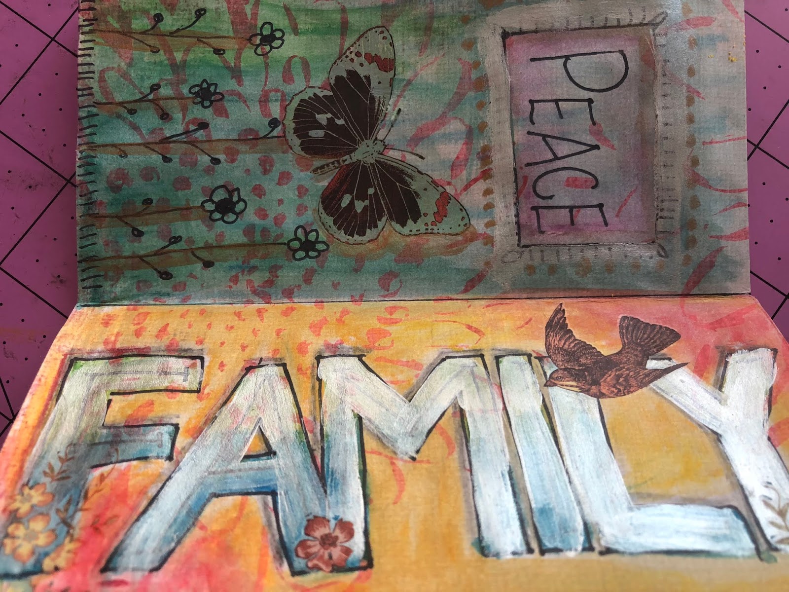 The idea behind this project is to work on a page a day for a week, including the cover. Each day choose a word that is truly meaningful to you, and dedicate an embellished page to it. Spend time thinking about the word and what it means, as well as experiment with different lettering. The biggest challenge is stopping each day and only doing one word at a time.