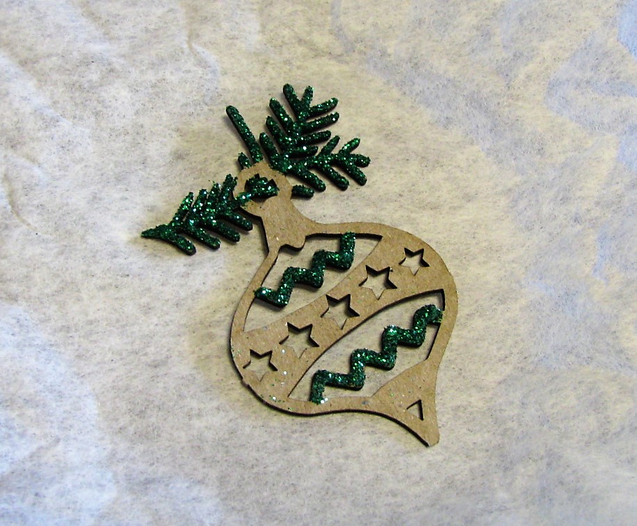 I began with adding some Best Glue Ever to the chipboard ornament,