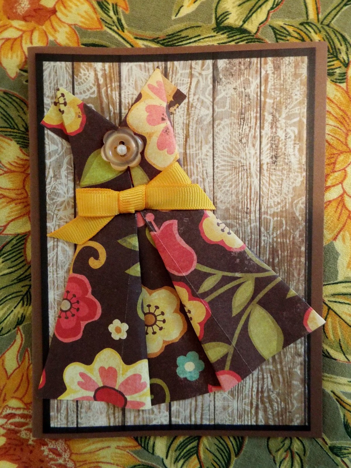 Ginny Here, I recently watched a You Tube video on how to make an origami Paper dress, I thought these would make the sweetest card for all occasions! So I had a great time crafting with friends and making these adorable dress card!