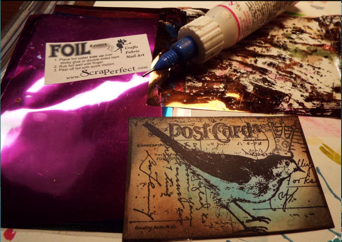 And then used a palette knife to smear ( not sure of the art term for this!) the glue down and again place the transfer foil on top and let dry for a couple of minutes.