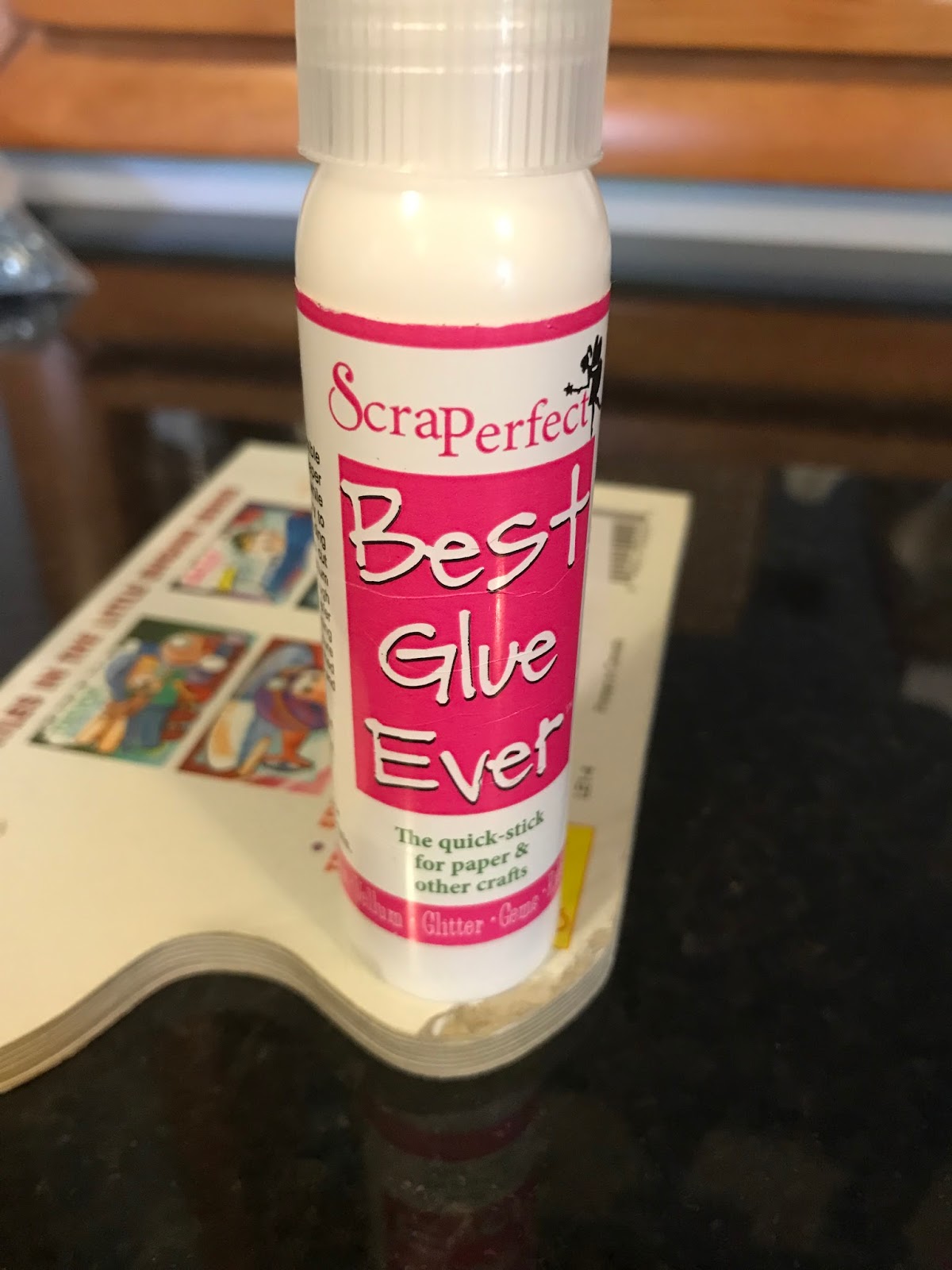 I wanted to repair the book, but how to do that in a child friendly way was stumping me. Plain white glue didn’t have enough hold. Tape could be chewed off. Crafting glues weren’t safe if kiddo decided to have a snack again…enter the Best Glue Ever.
