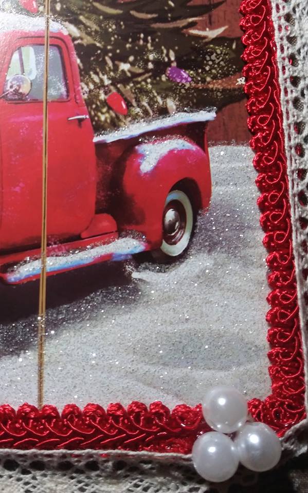As you can see, I also added a trio of pearls on the center where the two edges of trim meet. Ivory crocheted lace was also applied to the perimeter of the sign with the Best Glue Ever for added interest.