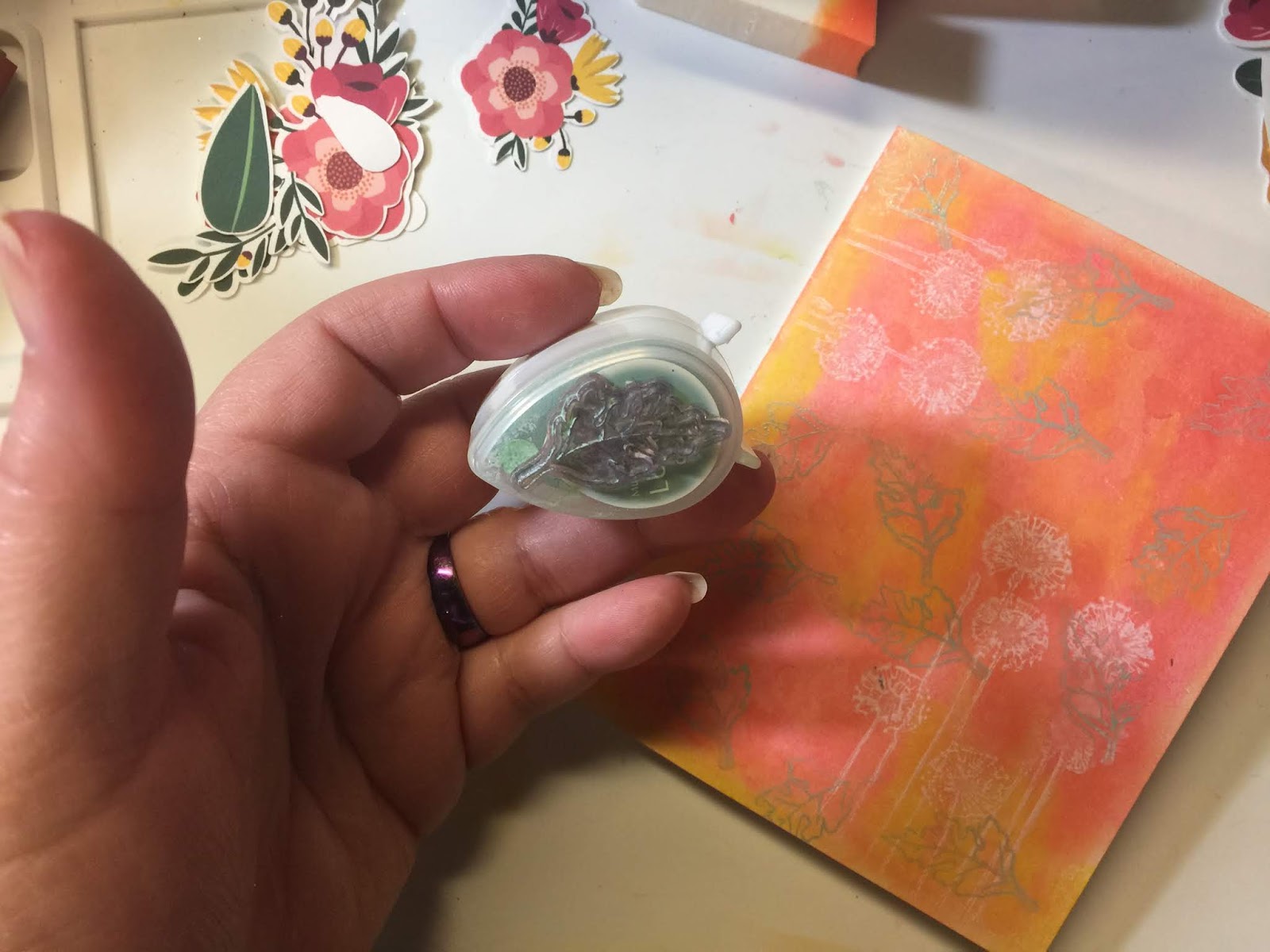 A quick tip: I used the stamp pad top to hold the stamp.