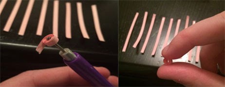 Step 4 : Creating the edging. Follow Step 3 until your reach glue, instead of removing your quilled paper from the tool continue rolling to seal the glued edge. Remove from tool.