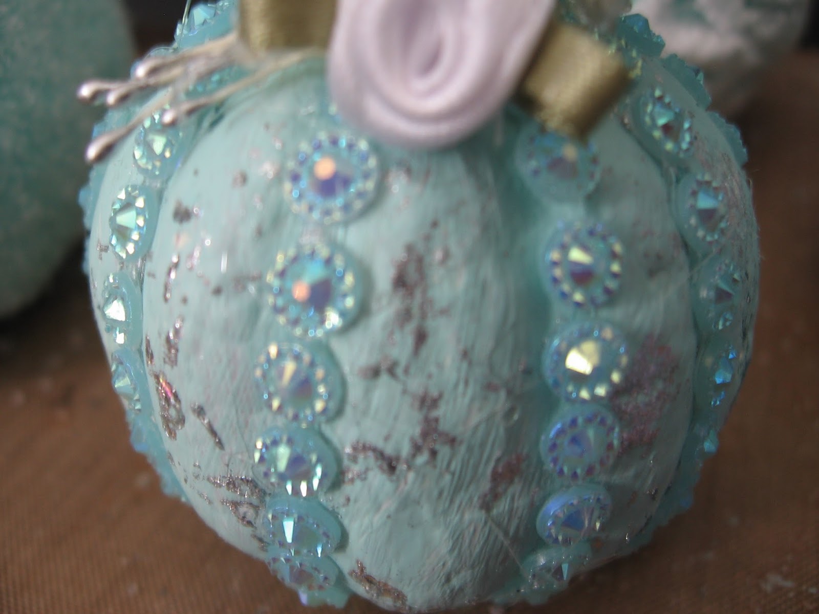 After using the foils, I got out some bling and ran it down each of the grooves of the pumpkin.
