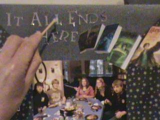 I downloaded the ad for the movie (photoshopped it a bit) and printed it. I also cut a piece from a Harry Potter bookmark, packaging, glued it to a vellum office tag and added some metallic fiber. Simple, easy, CHEAP! NOTE: I outlines the journaling with silver pen to mimic the vellum tag..
