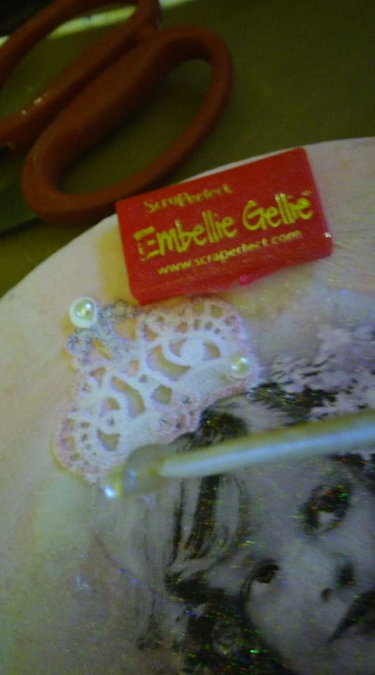 The other star product of this project is Embellie Gellie, which I used to add the tiniest pearl and rhinestone embellishments to the lace crown and wings. It works like a rock star every time, I love this product!