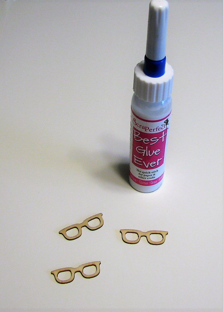 However, the  Best Glue Ever, along with the No-Clog Writing Cap, were just what I needed to help me make easy embellishments for my page. When I looked at the fun background paper, I noticed the fun little glasses. I just happened to have some matching wood glasses in my stash.