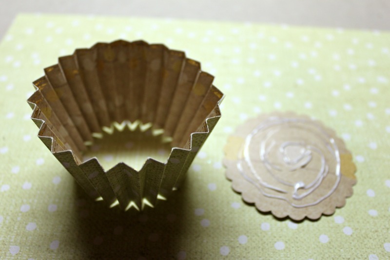 Flatten the accordion piece on top of the circle and hold until dry. This just takes a minute: