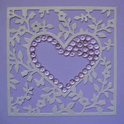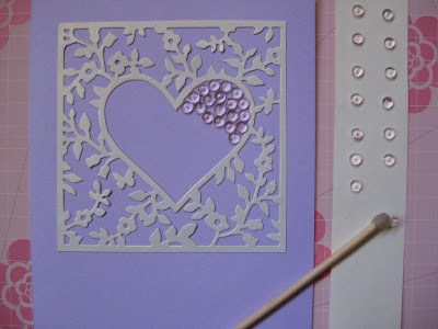4. Fill in the heart shape by transferring the gems from the release paper to the card using the Embellie Gellie. I love this tool because it makes labor intensive jobs easy and prevents me from enduring undue frustration while crafting.